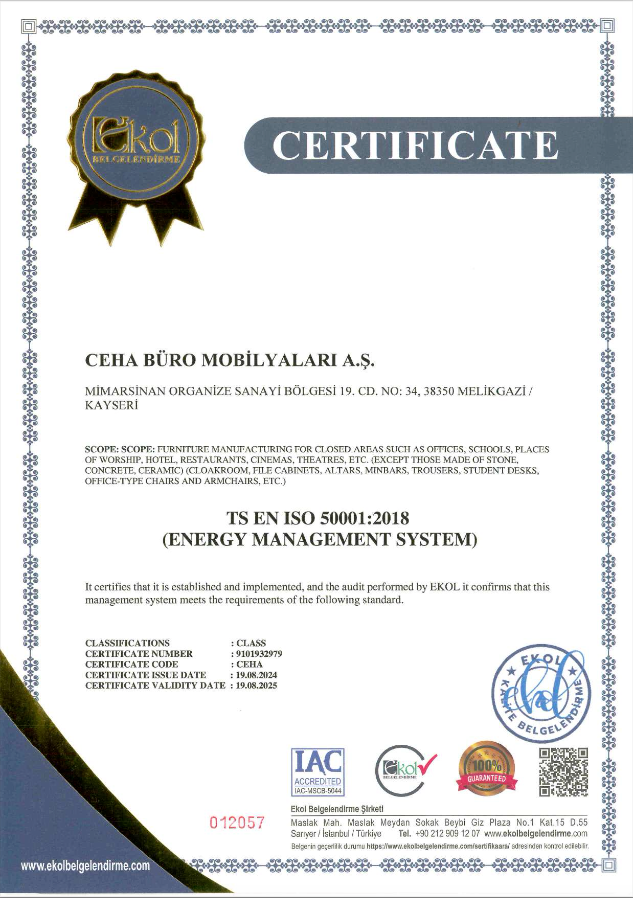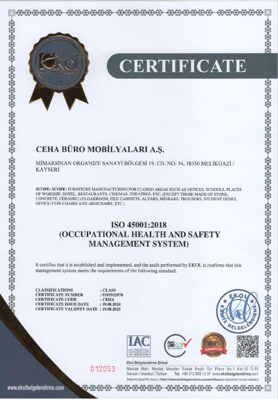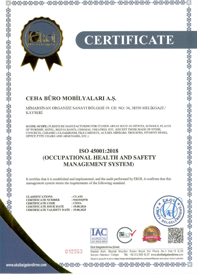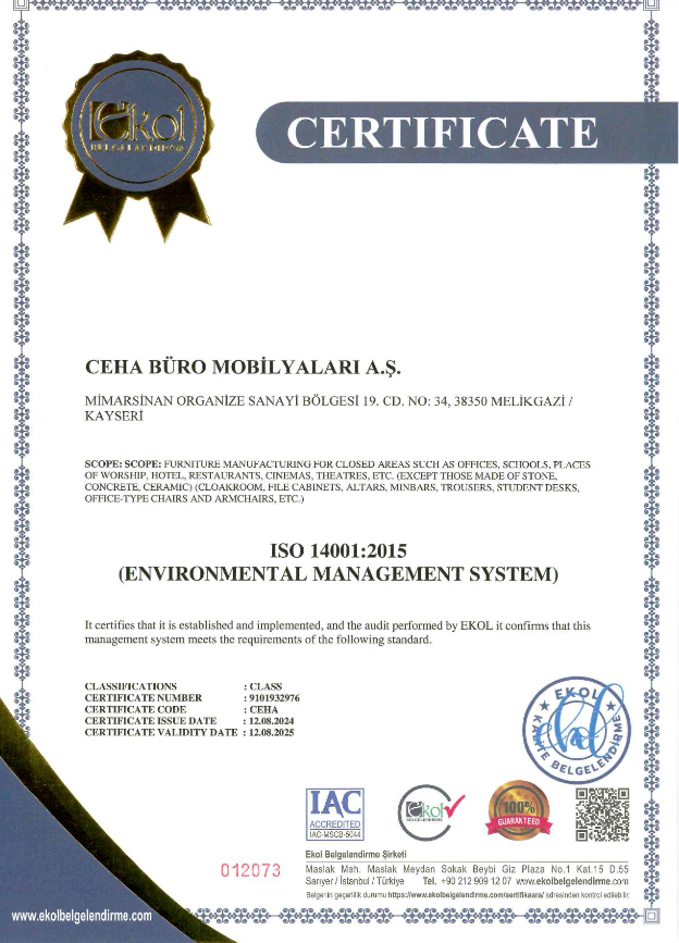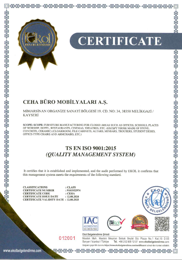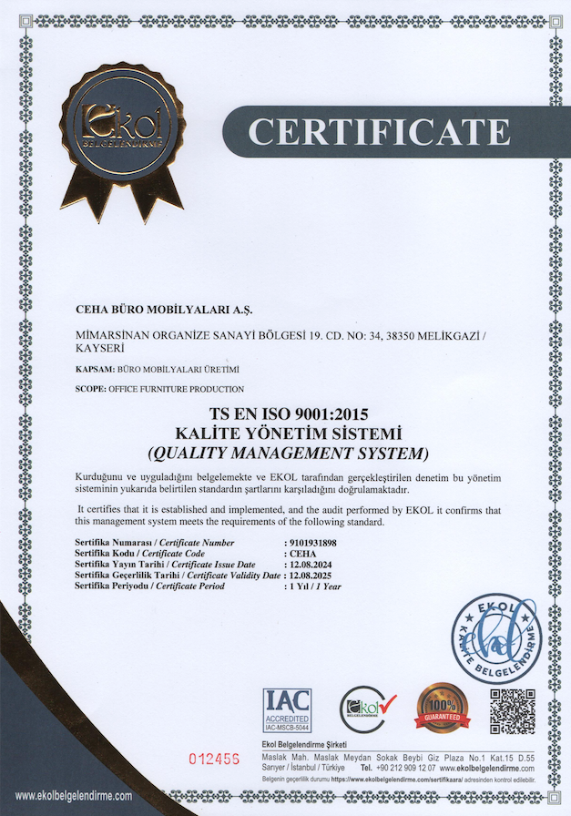 As Ceha Canada, we have various internationally recognised certificates to ensure that our products and services meet the highest quality standards. We continuously improve our production and service processes with our quality, safety and sustainability-oriented certificates, especially ISO certificates, in order to best meet sectoral requirements and customer expectations.