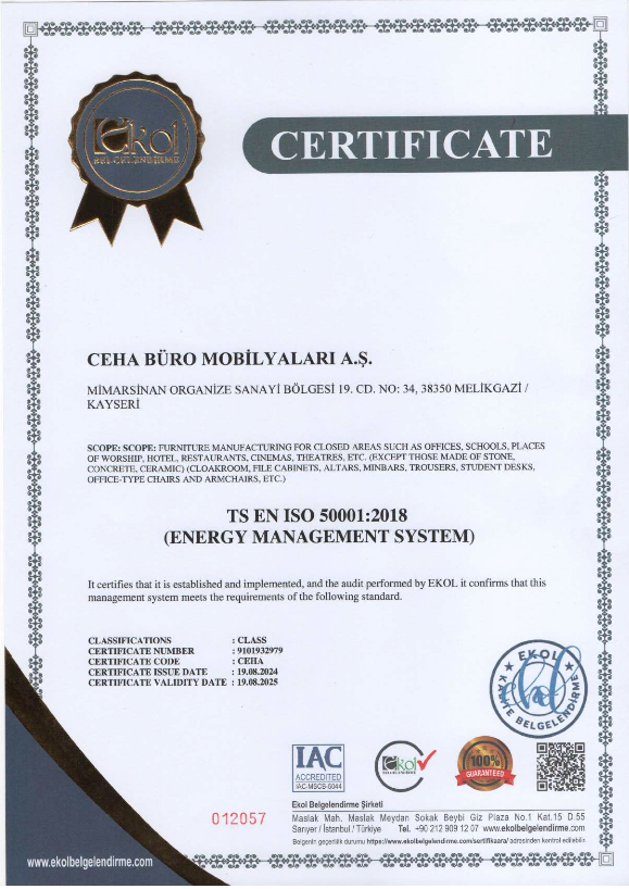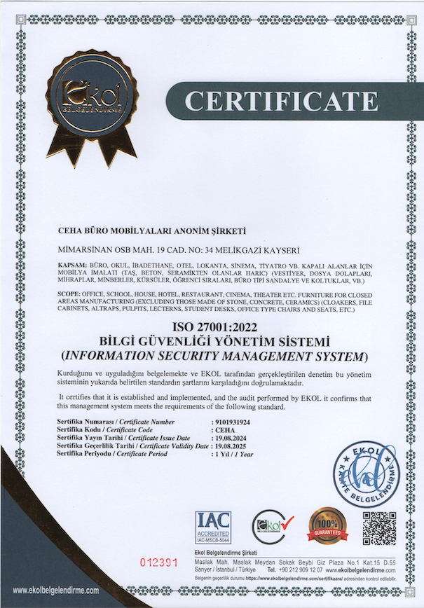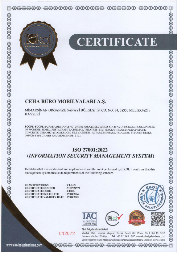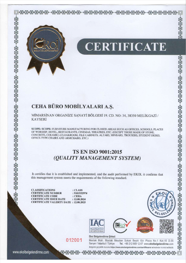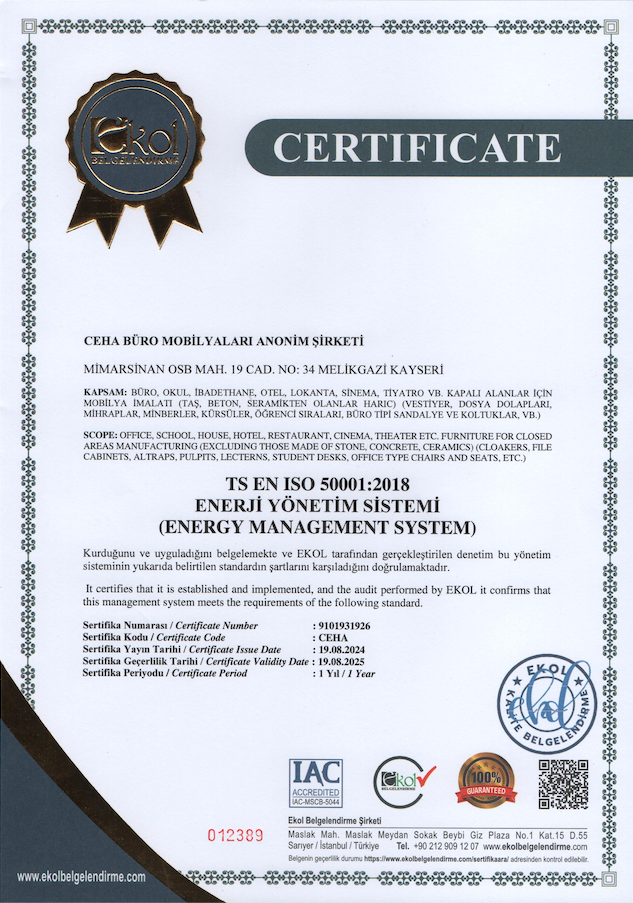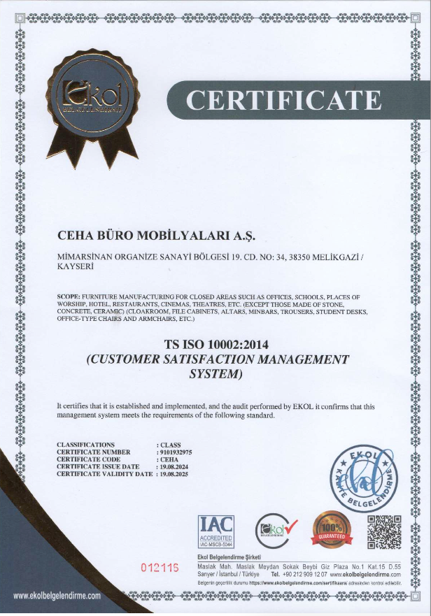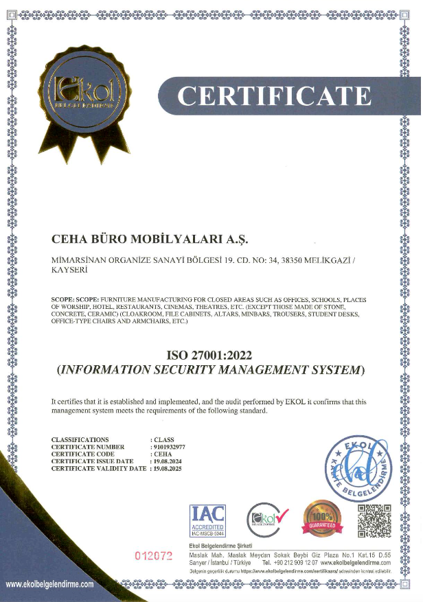 As Ceha Canada, we have various internationally recognised certificates to ensure that our products and services meet the highest quality standards. We continuously improve our production and service processes with our quality, safety and sustainability-oriented certificates, especially ISO certificates, in order to best meet sectoral requirements and customer expectations.