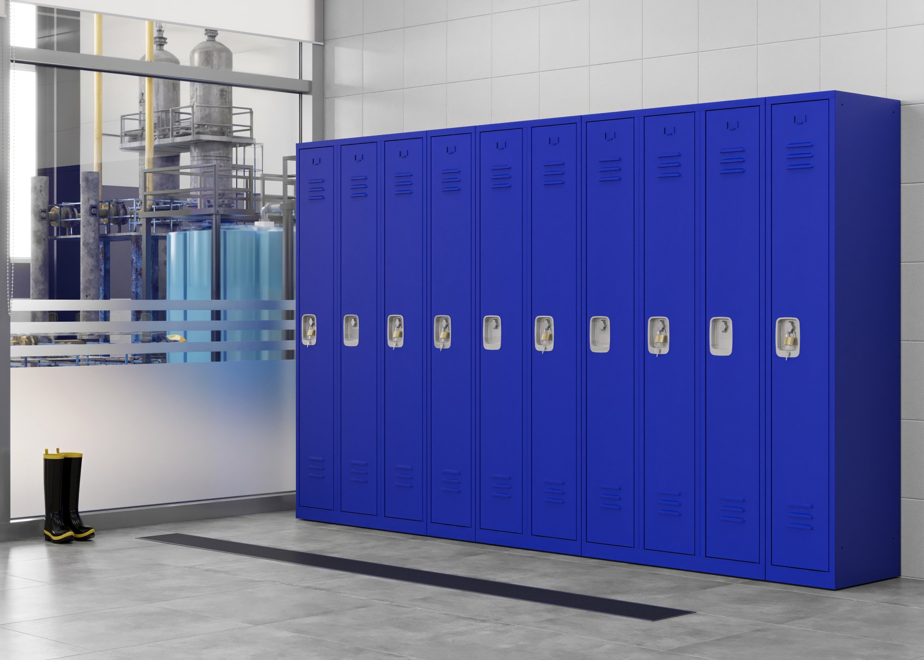 We delivered 100 RH Series lockers, each measuring 12" W x 18" D x 72" H. These one-tier lockers feature a welded steel structure, padlock-ready recessed handles, one interior shelf, and three hooks for versatile storage. The units were powder-coated in RAL 5002 P blue for a clean, professional appearance and increased resistance to wear. The production and delivery were completed within a 12-week timeline.