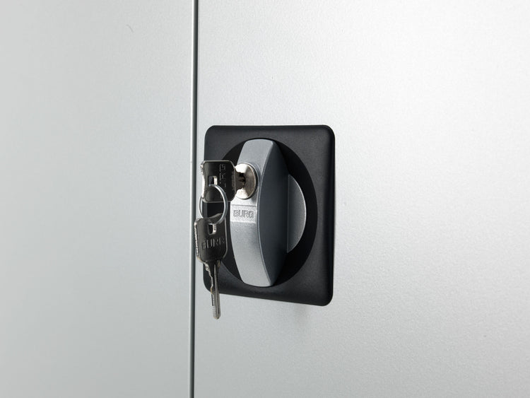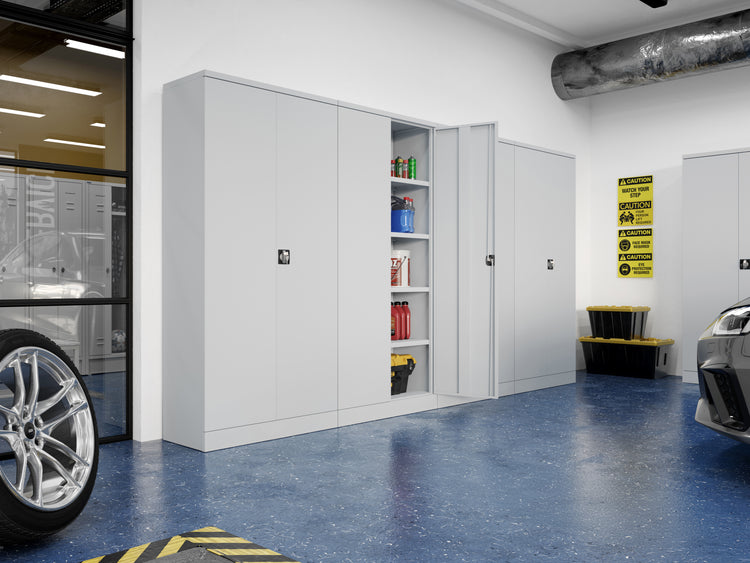 Manufactured from robust steel and finished with a 200°C baked epoxy-polyester powder coating, these cabinets are built to last. The lockable square handle with a two-point Espagnolette locking system provides secure storage, while the adjustable shelves make it easy to customize the interior to your needs.