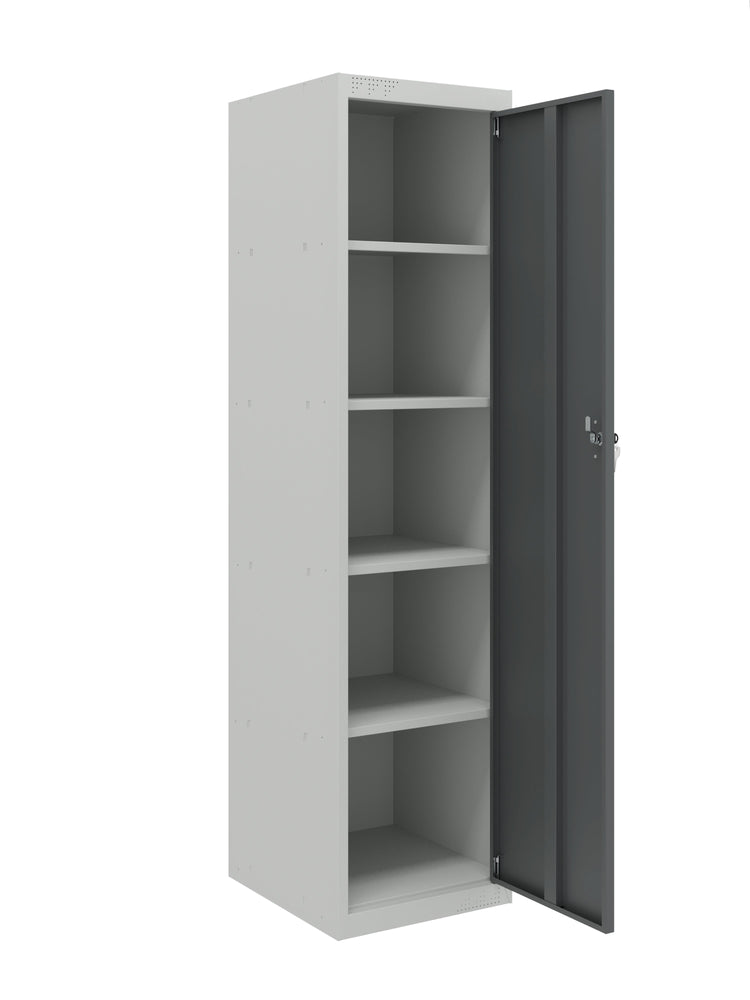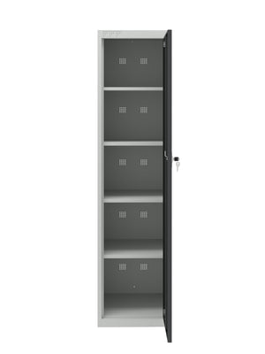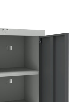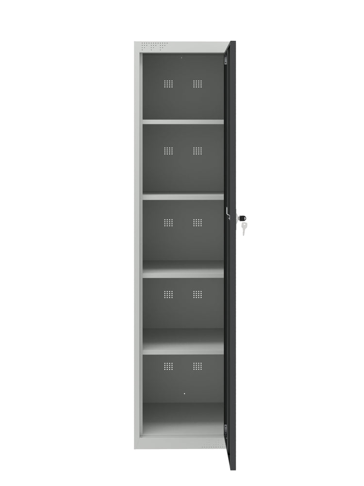 Finished with a scratch-resistant powder coating, this cabinet is built to stand up to daily wear. Inside, four height-adjustable shelves allow you to customize the layout to suit tools, office supplies, cleaning products, or bulk items. Each shelf supports up to 100 lbs, giving you a reliable storage solution for heavier gear.