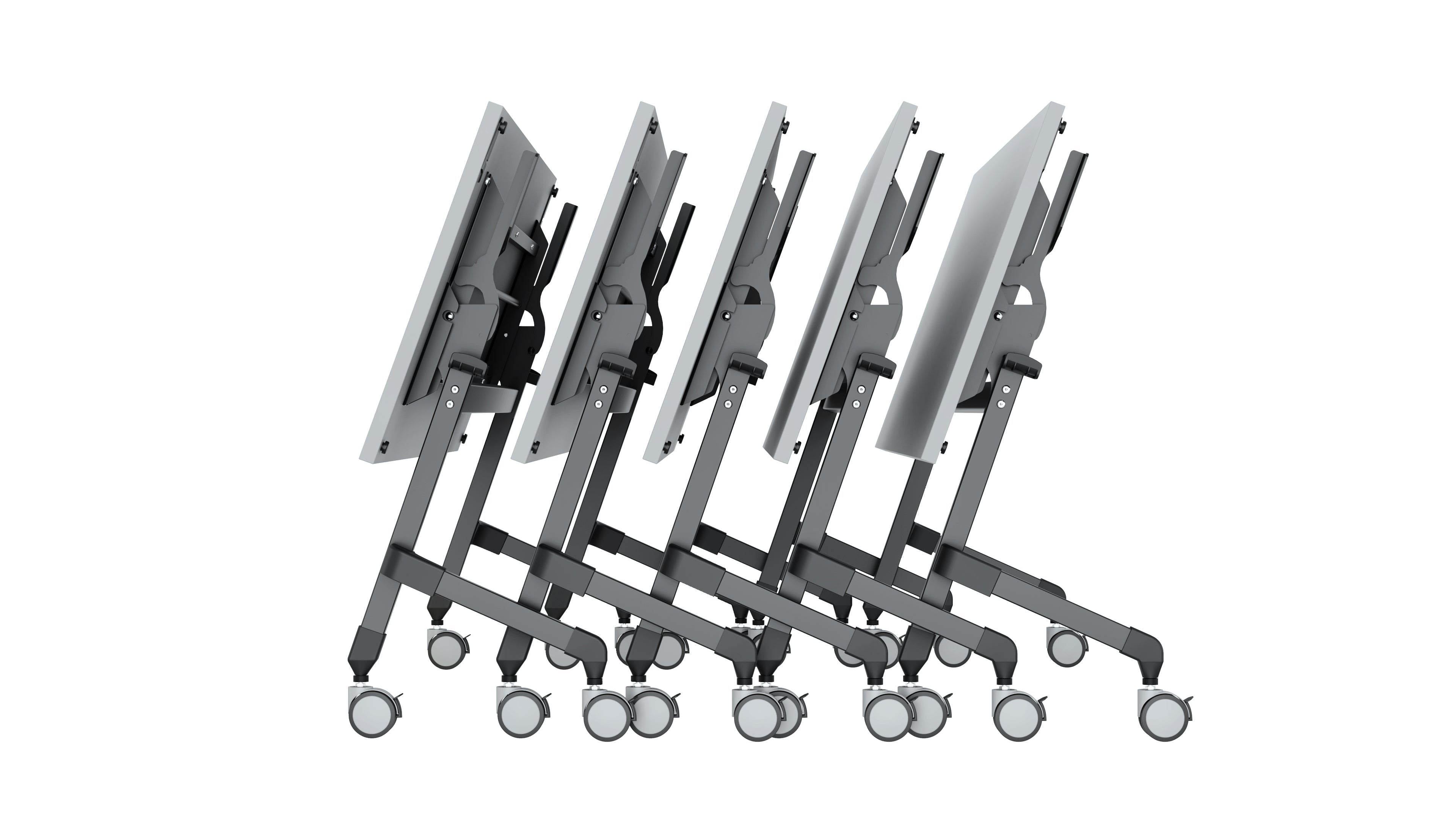 Enjoy quick setup with a pre-mounted top, a tool-free folding system, and ganging brackets that make it easy to link multiple tables. A monitor shelf provides added vertical storage, while double bag hooks, braked caster wheels, and spacious legroom maximize user comfort and functionality.