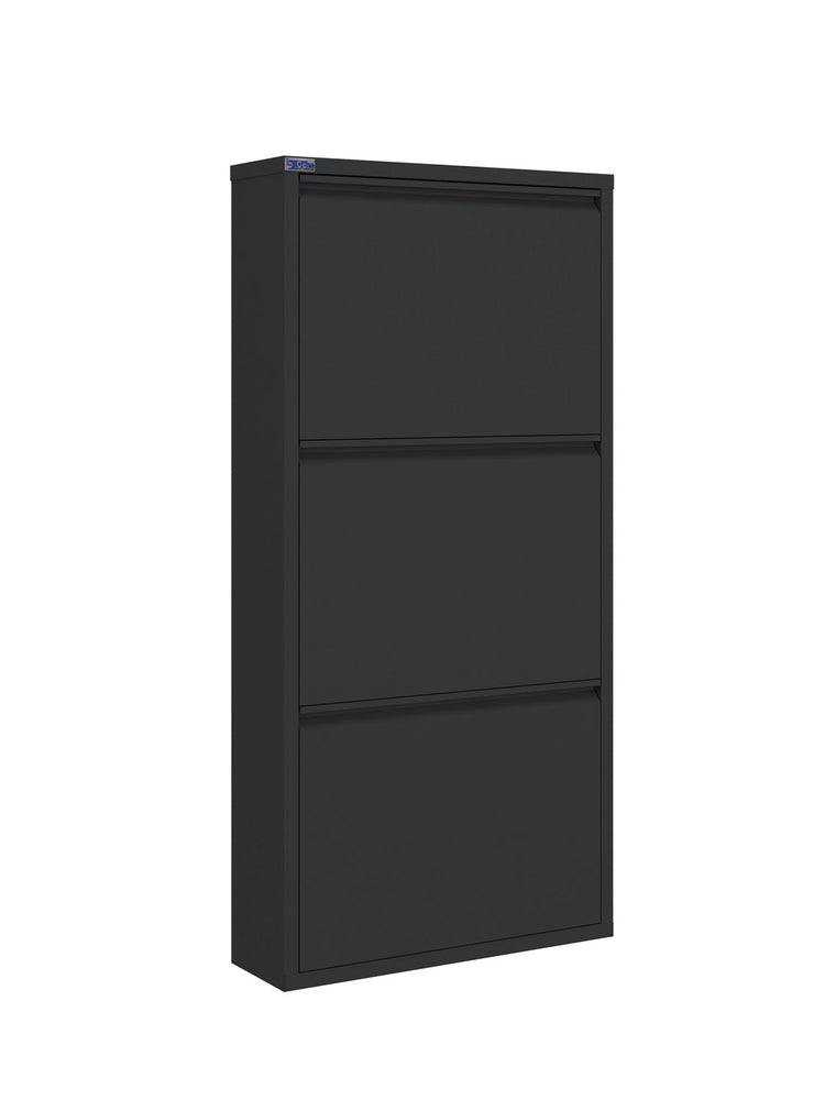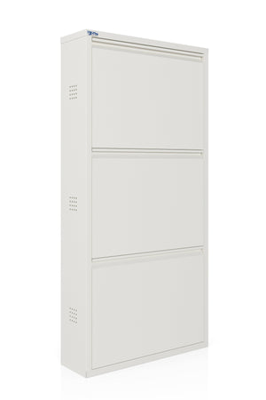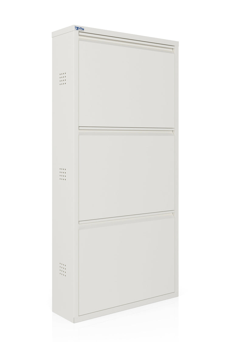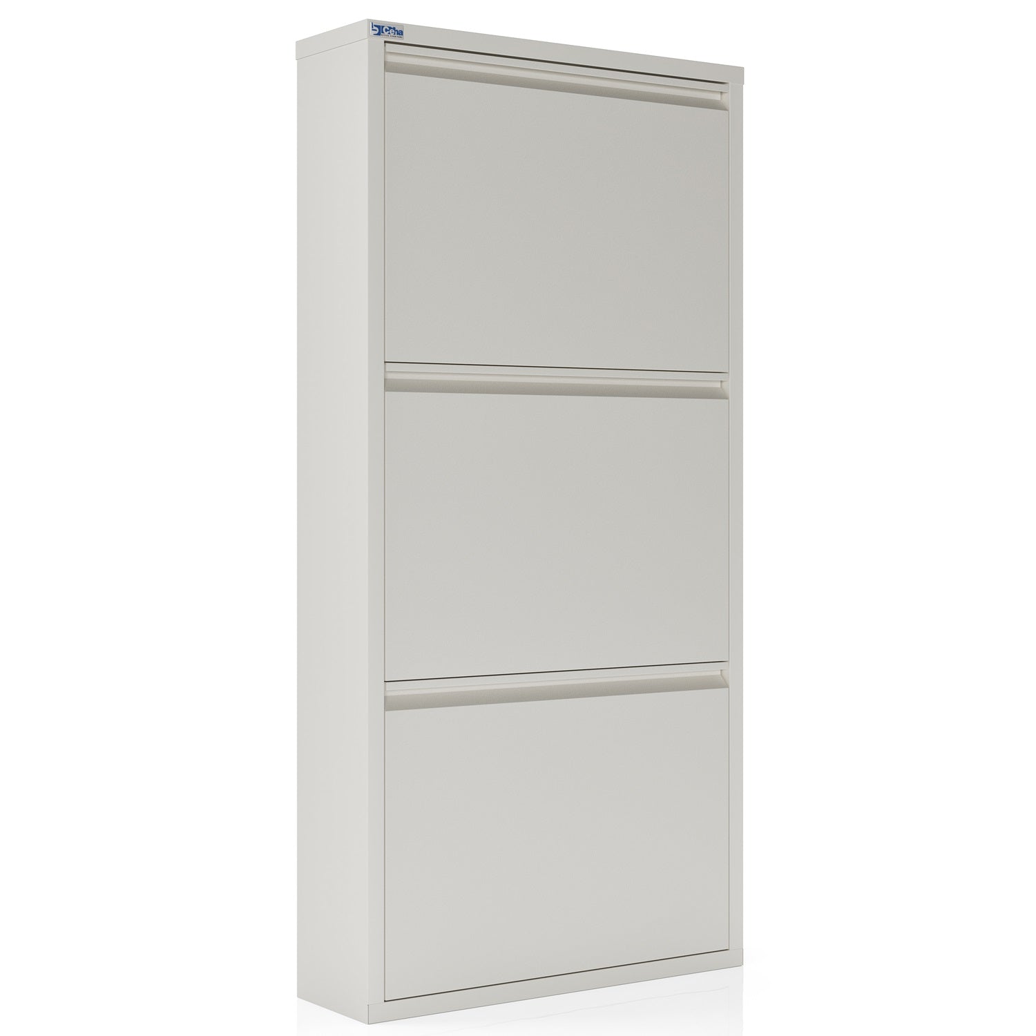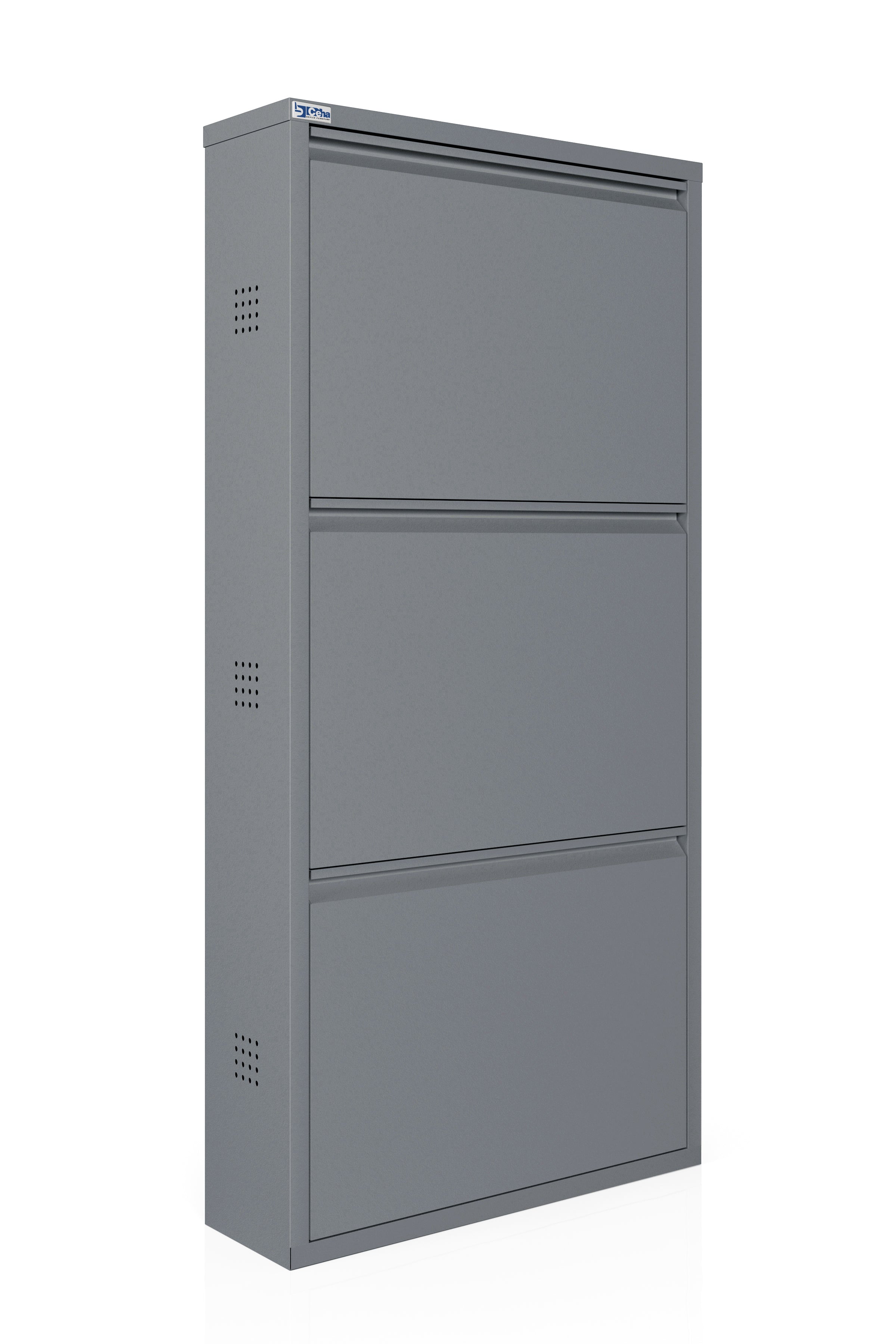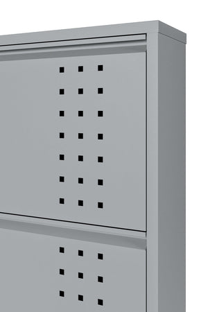 Maximize your floor space while keeping footwear organized with this vertical metal shoe cabinet, crafted from fully welded steel and finished in a durable epoxy-polyester powder coating. Its modern, slim design is ideal for tight spaces like entryways, closets, garages, or bathrooms.