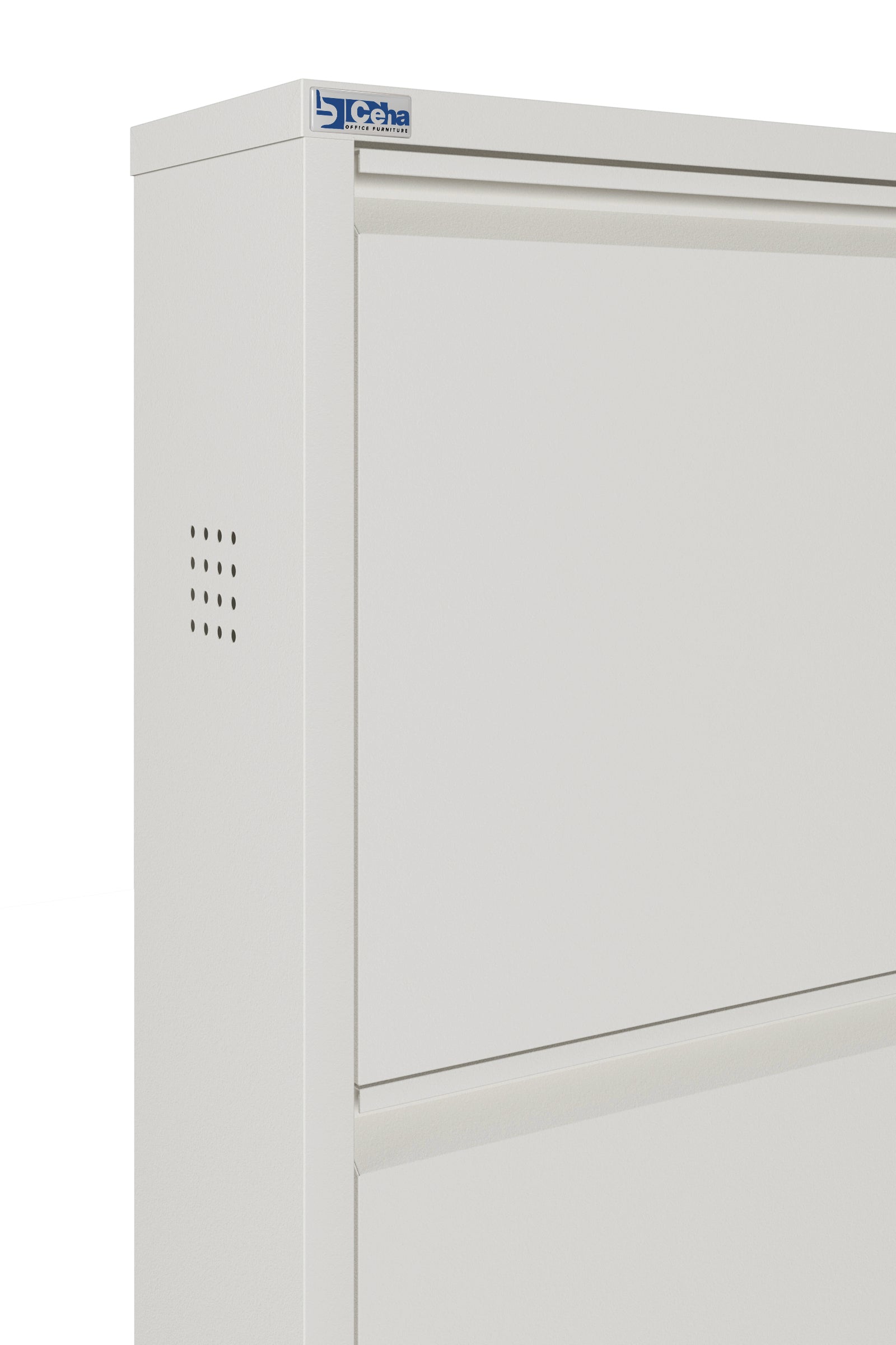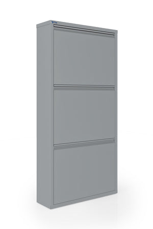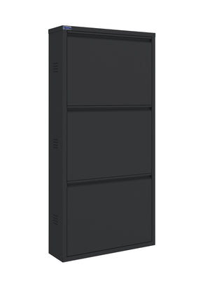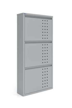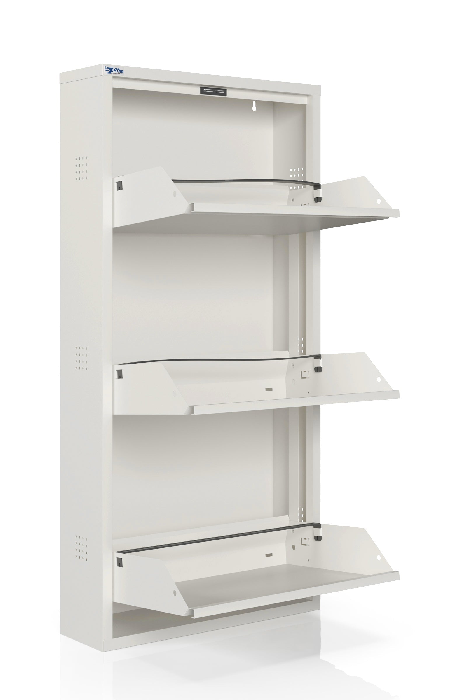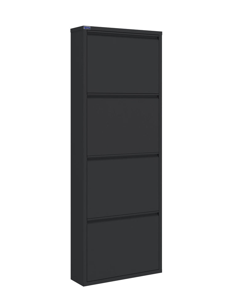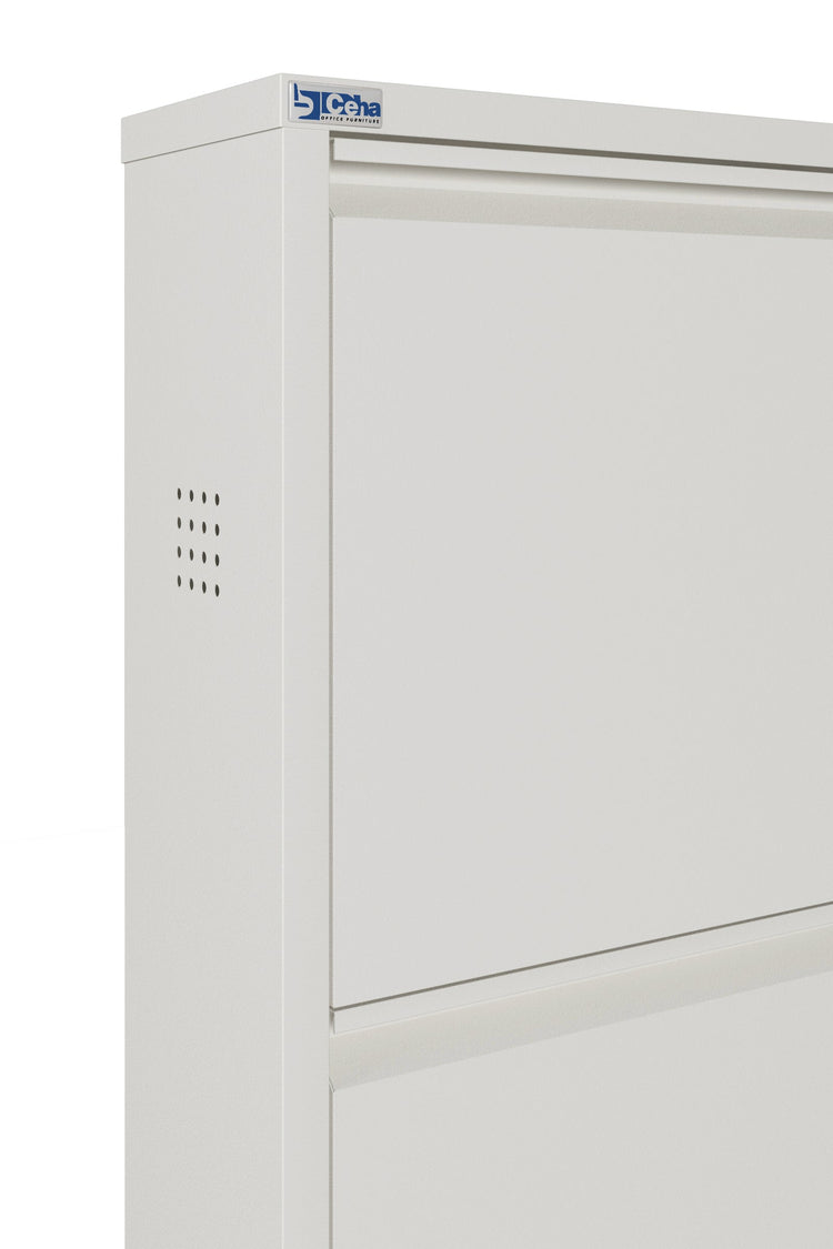 Maximize your floor space while keeping footwear organized with this vertical metal shoe cabinet, crafted from fully welded steel and finished in a durable epoxy-polyester powder coating. Its modern, slim design is ideal for tight spaces like entryways, closets, garages, or bathrooms.