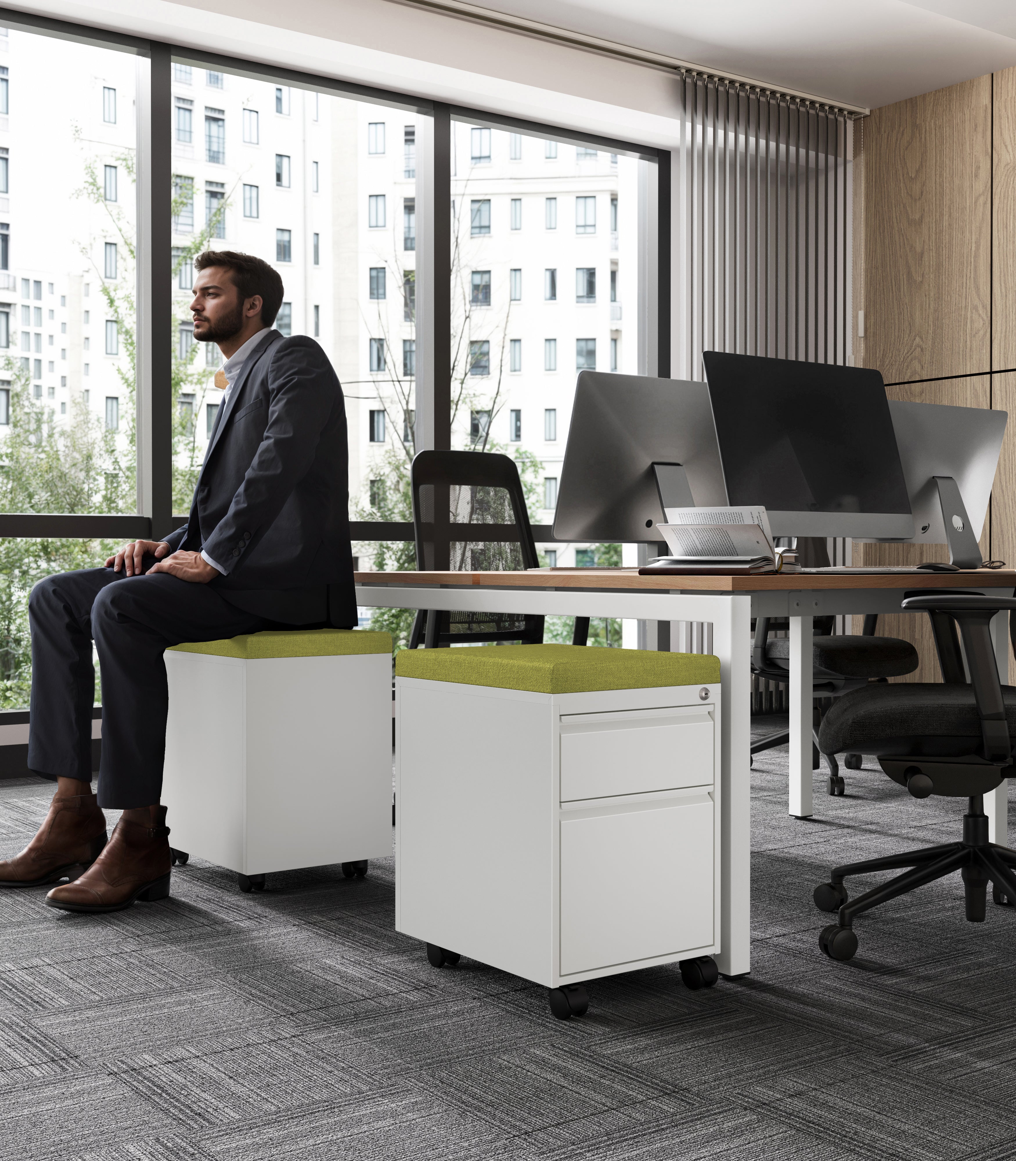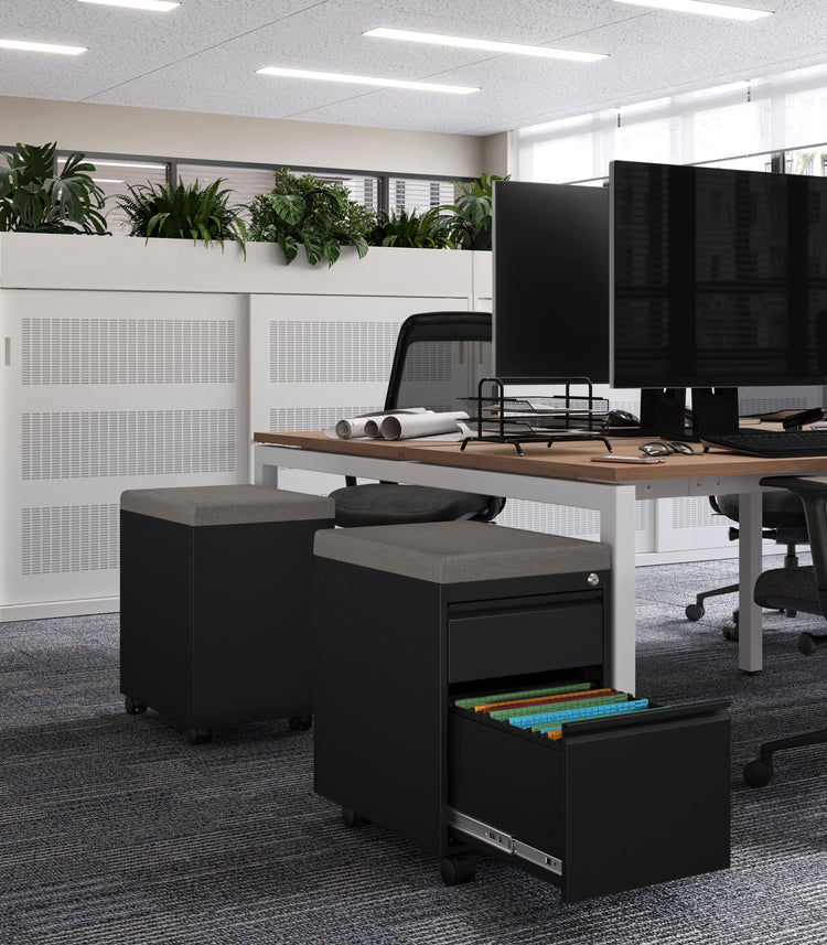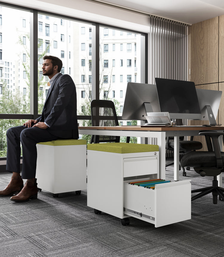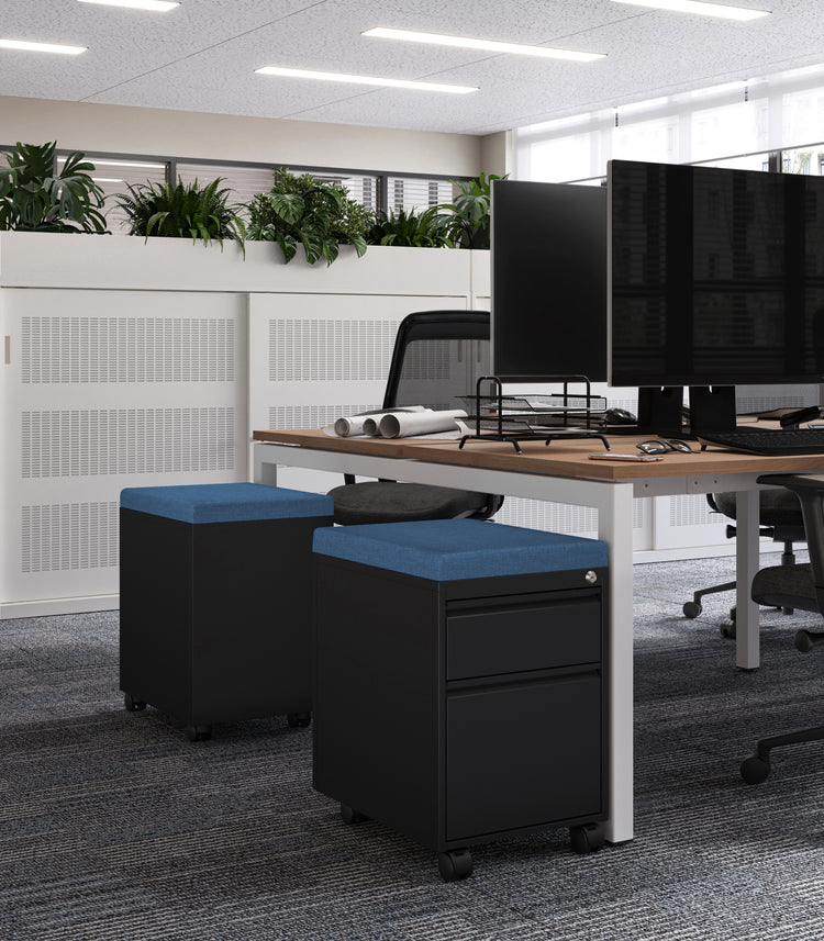 Upgrade your workspace with our mobile pedestal with cushioned top, designed for comfort, security, and efficiency. Featuring an integrated handle and a durable powder-coated finish, this pedestal offers a modern look with long-lasting performance.