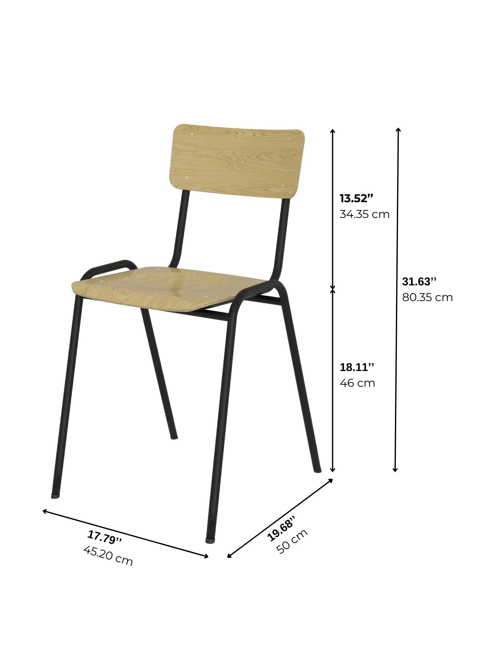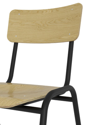 Their stackable design allows up to 15 chairs to be nested vertically, making them a smart solution for environments where space and flexibility matter. The 8 mm birch plywood and Ø 21 mm tubular frame construction ensure durability, while glides on each leg protect soft flooring surfaces.